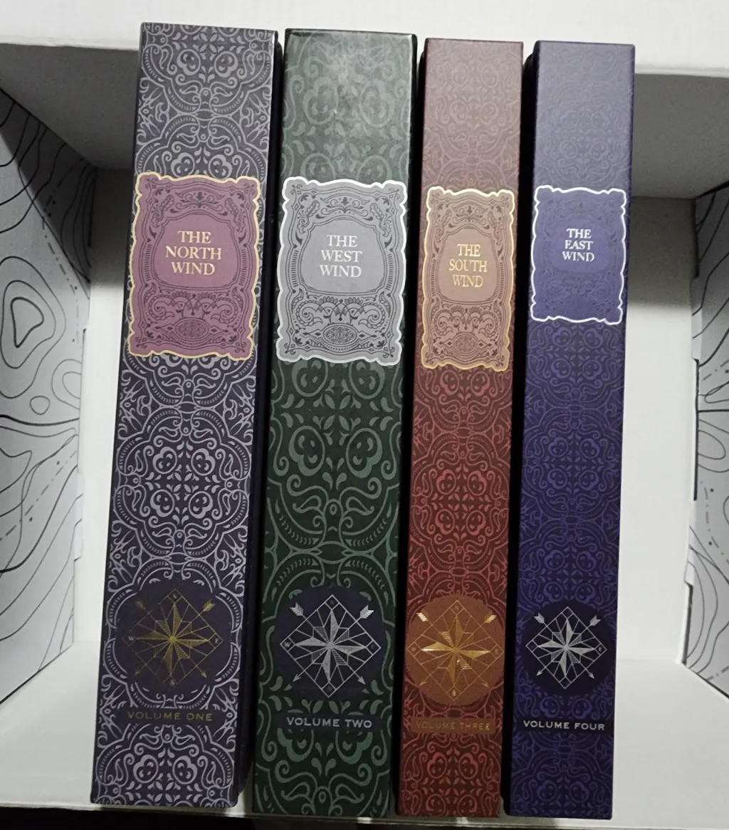 Purchase the full collection of our exclusive, special edition, hardcover The Four Winds novels by Alexandria Warwick! This listing includes The North Wind, The West Wind, The South Wind, and The East Wind. Each includes special edition artwork on the cover, custom endpapers, unique designed page edges, and metal corner detailing.